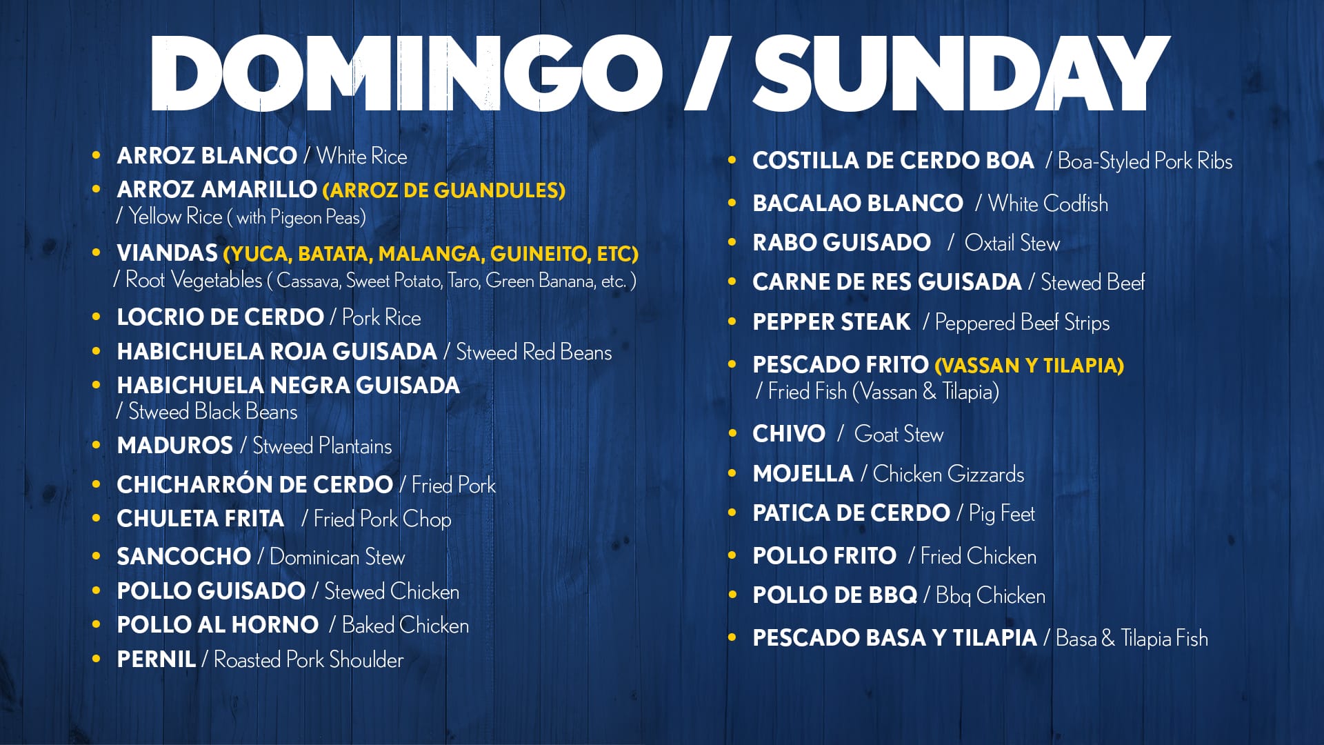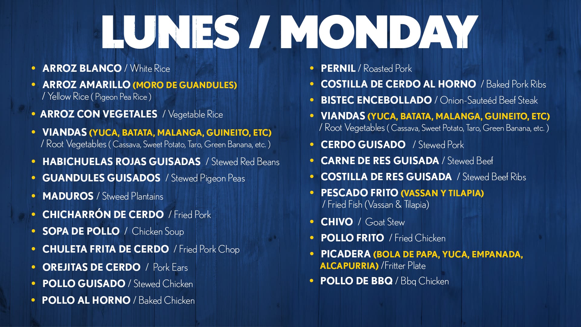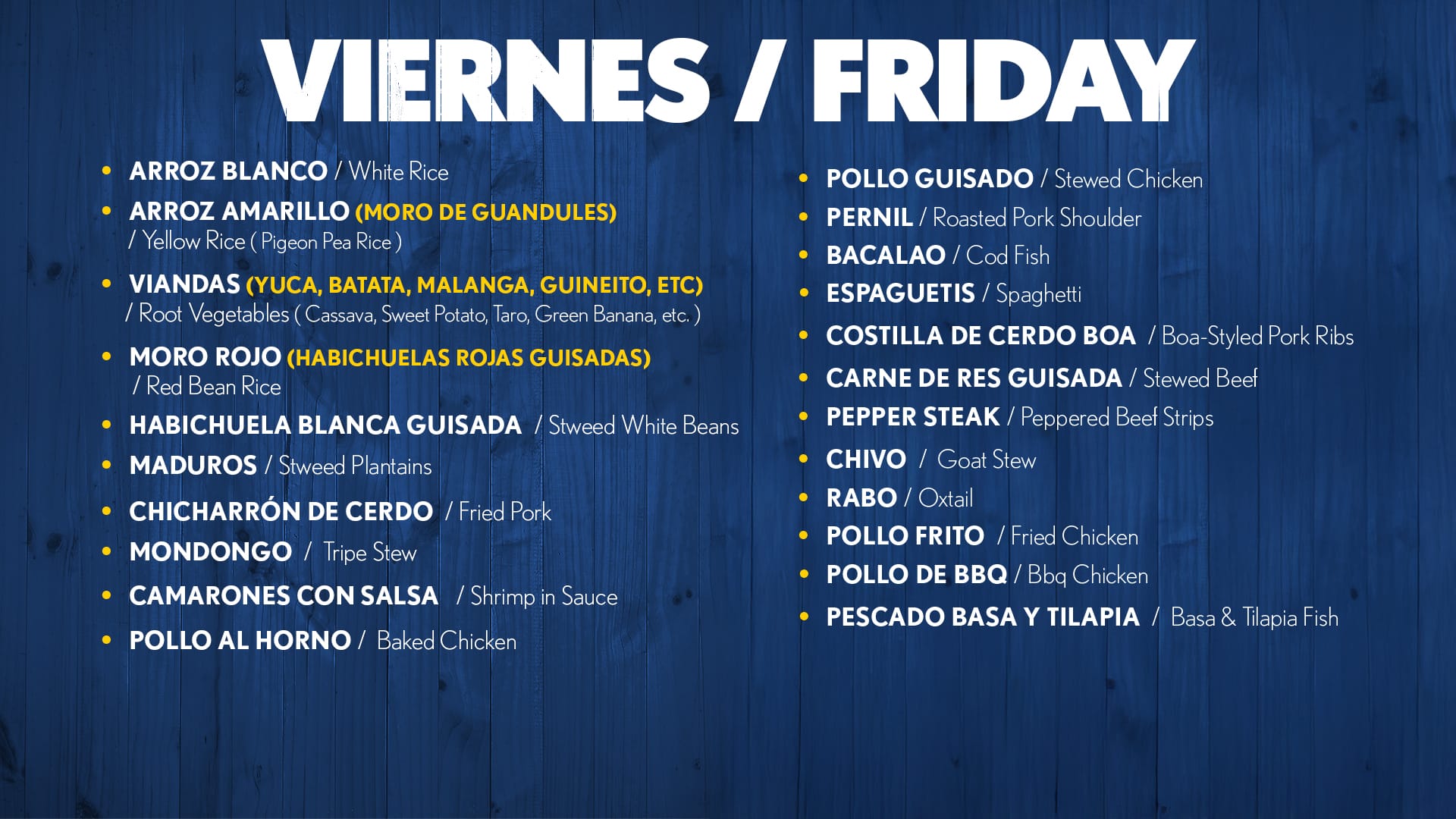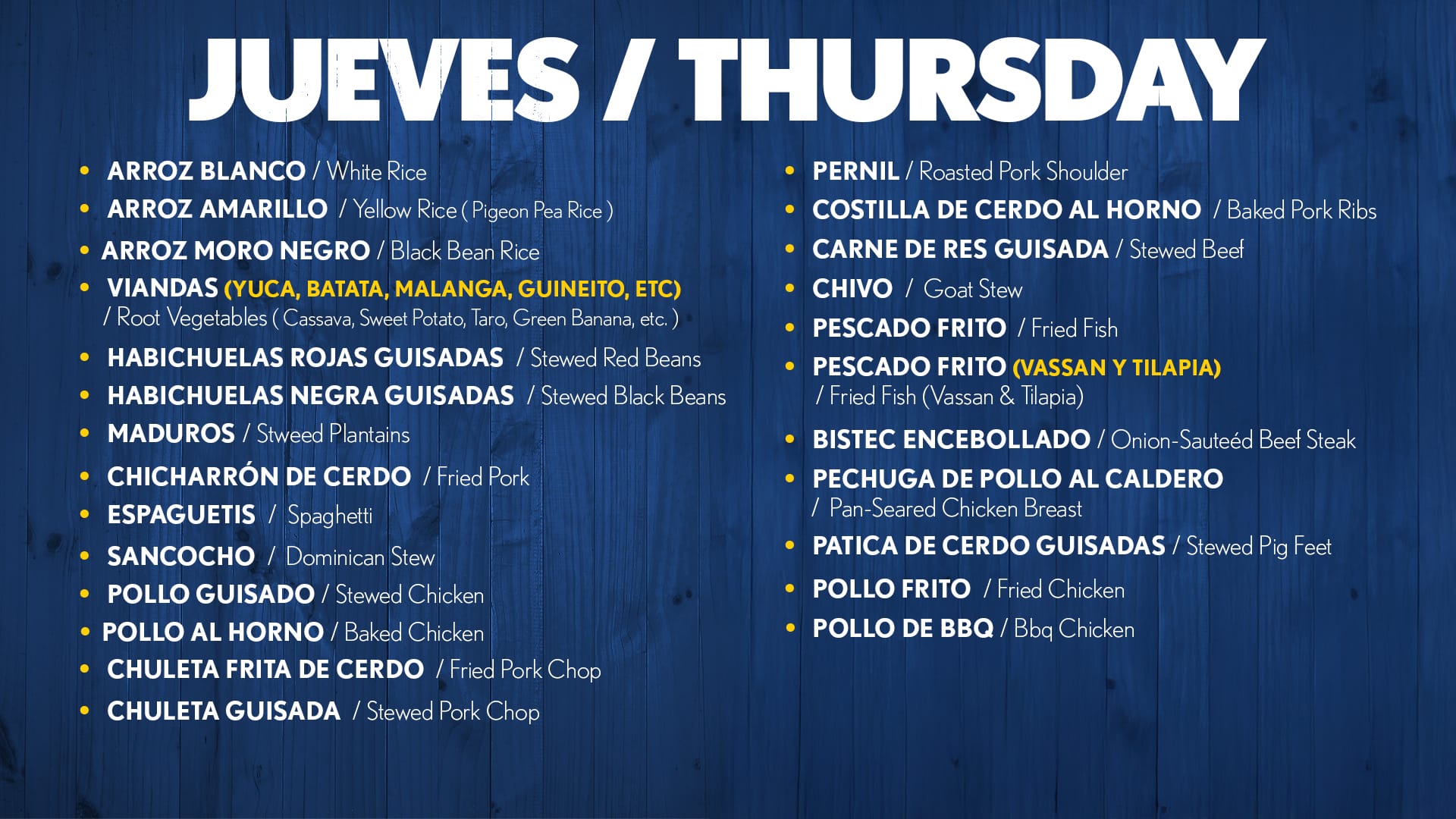 Our Menu
